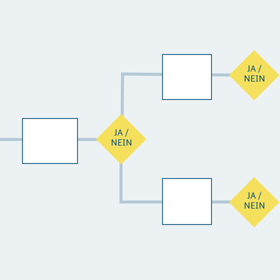 Der Entscheidungsbaum stellt Entscheidungslogiken und deren Auswirkungen dar.