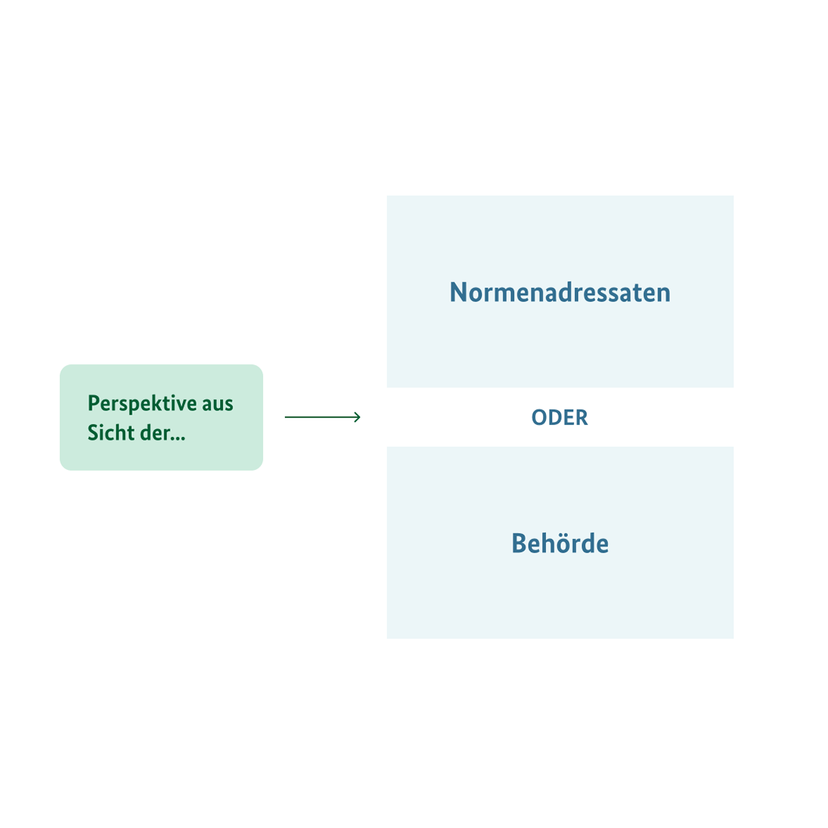 Schaubild, welches Ziel der Visualisierung und Perspektive abstrakt darstellt. Das Ziel ist: Ich möchte den Prozess für Normenadressaten verbessern. Die Perspektive ist: Normenadressaten.