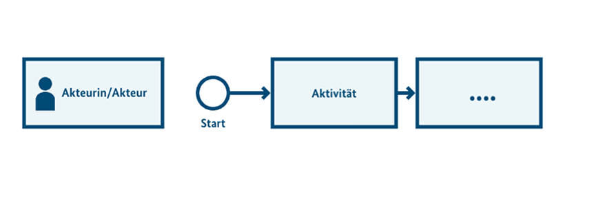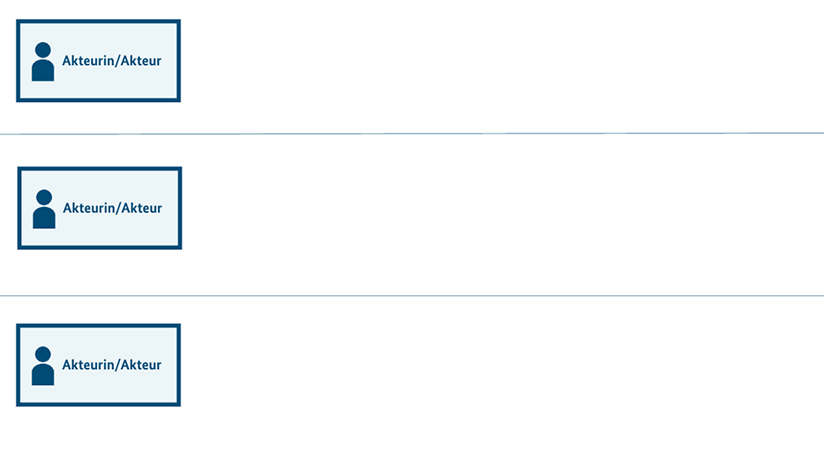 Fragment eines Flussdiagramms mit drei horizontalen, länglichen Kästen, die am Anfang mit einer Platzhalter-Box “Akteurin/Akteur” markiert sind.